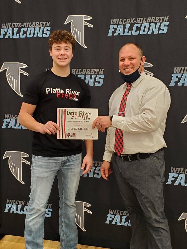The Platte River Prep Athlete of the Month is awarded by the Platte River Preps staff to recognize outstanding high school athletic achievement. Winners receive a T-shirt and certificate from Platte River Preps. Gavin Sheen was a January winner of this award. As a senior he has 18.8 points per game, 3.7 rebounds per game, and 2 steals per game. He has also played two games where he sank eight 3-pointers per game - most recently on January 16th against Ansley-Litchfield. Congratulations to Gavin and the Falcon Boys Basketball team!